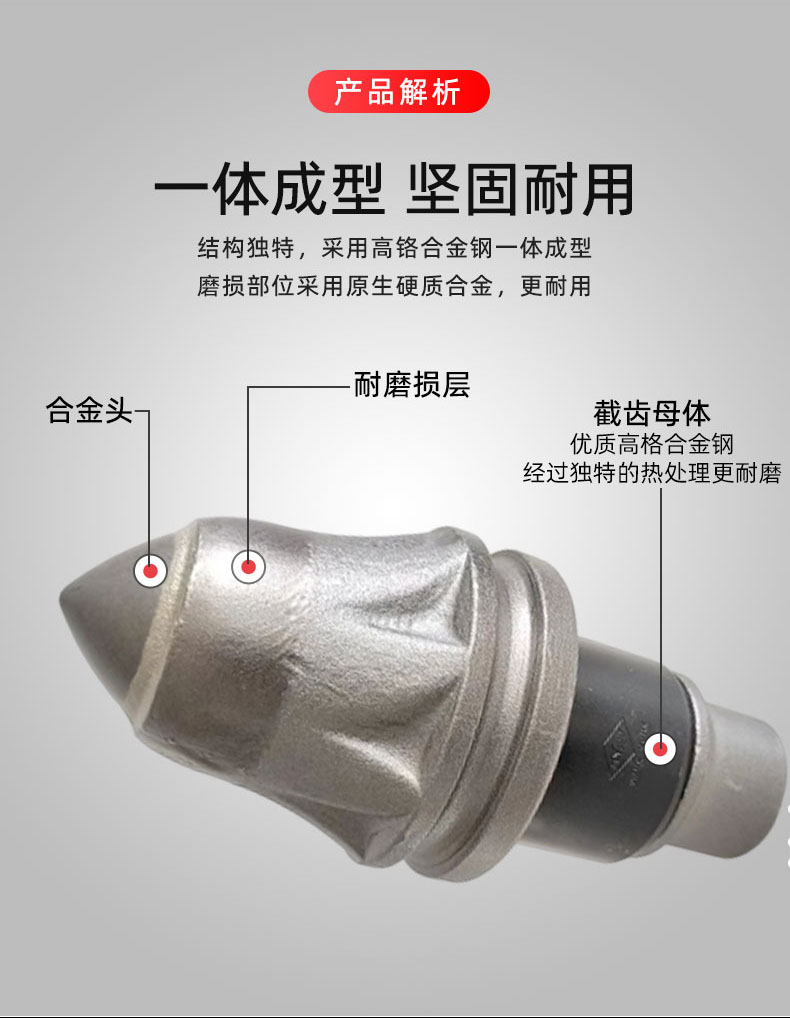 產(chǎn)品簡(jiǎn)介:截齒特點(diǎn):1、硬質(zhì)合金刀頭采用低鈷材料,硬質(zhì)合金刀頭更大,耐磨性更強(qiáng)。2、先進(jìn)的加工工藝,保證硬質(zhì)合金刀尖的高品質(zhì)。3、硬質(zhì)合金刀頭在鉆孔過程中具有更高的受力強(qiáng)度,減少斷齒或開裂的風(fēng)險(xiǎn)。4、鉆齒型譜豐富,針對(duì)不同地層,多種型號(hào)類型可供選擇。
