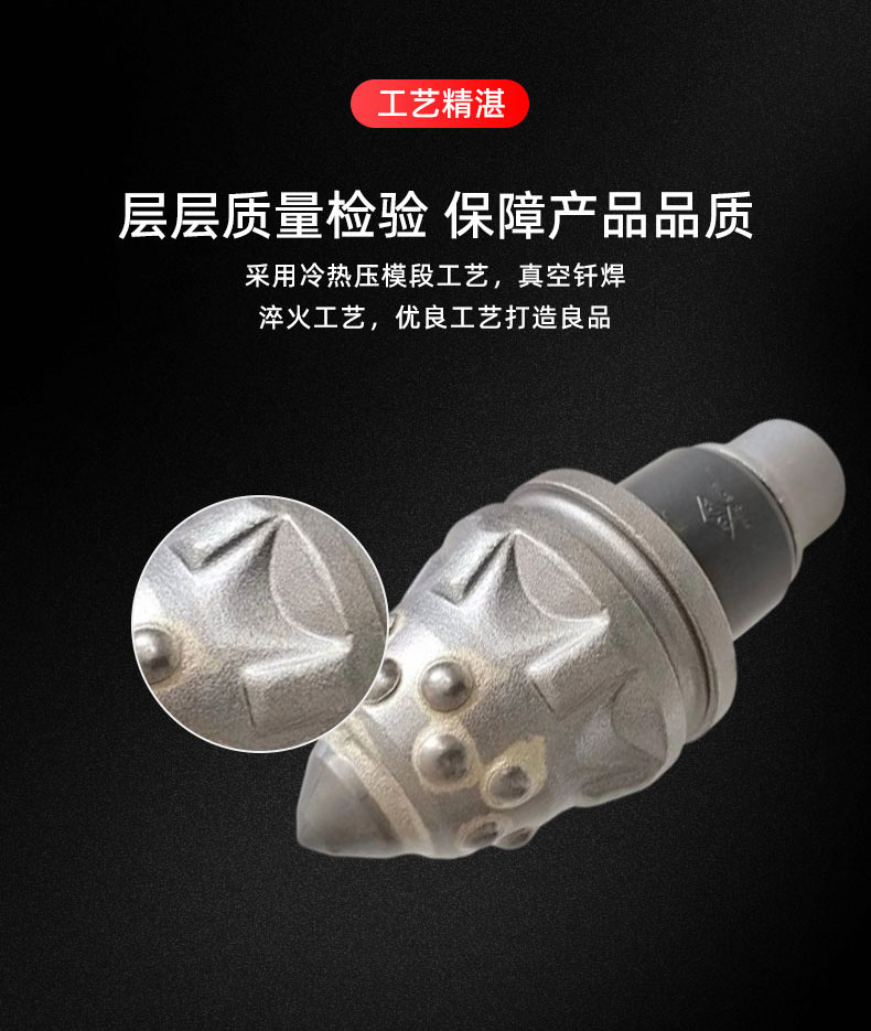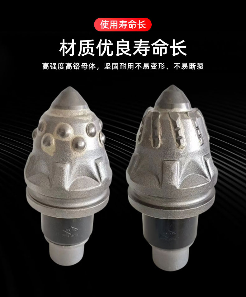 1、硬質(zhì)合金刀頭采用低鈷材料,硬質(zhì)合金刀頭更大,耐磨性更強(qiáng)。